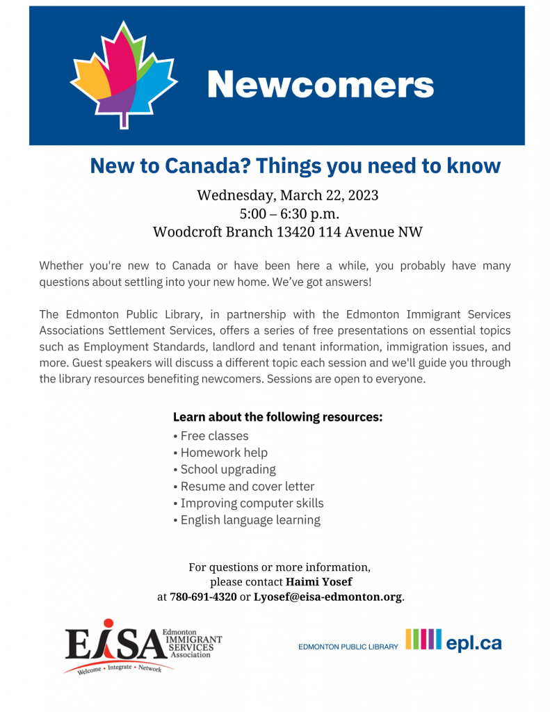 New to Canada: Things You Need to Know – Information Sessions in Libraries